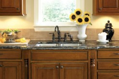 Granite is a product of nature. One third of every new home built in the U.S. has a granite countertop. Over the last 10 years, granite countertop especially the solid style seems more and more popular. Granite is available in hundreds of colors, from various shades of white to Granite_Tilebrowns, reds, greens, blues, and black. The most popular tones are brown and beige. As well as being hard, kitchen granite countertops can take hot items, like pots and pans, and is very stain resistant to hot grease and oil if it is sealed with a silicone-