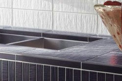 Ceramic tile is durable, heat resistant, and easy to clean. Add to that inexpensive and you've got a really good choice for countertops for the average home. Because it's installed a section at a time, it can be done by most resourceful homeowners. The disadvantage is that the surface is uneven, tiles may easily chip or crack, and grout lines may become stained.
